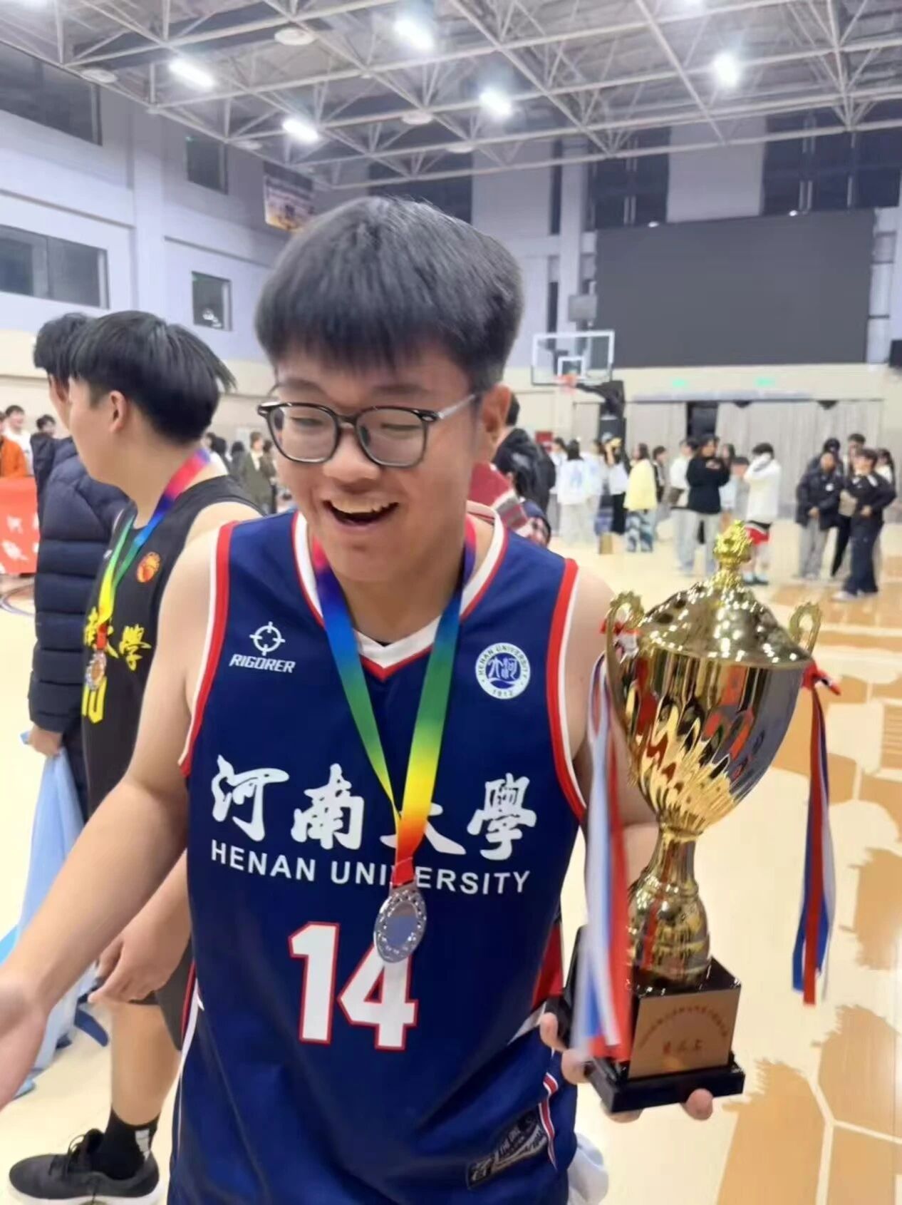大家好!我是22级金融数学专业康家宁。身高193cm, 是司职小前锋。作为球队里为数不多大四的球员,非常感谢教练能给我这个机会,非常感谢各位弟弟们的信任。正是大家的共同努力,才有今天的欧亚男篮.在河大的比赛中,我们拿过第四,拿过季军,拿过亚军。引用航队的一句话“欧亚今年很强,明年会更强”!我们一定会再接再厉,持续进步!