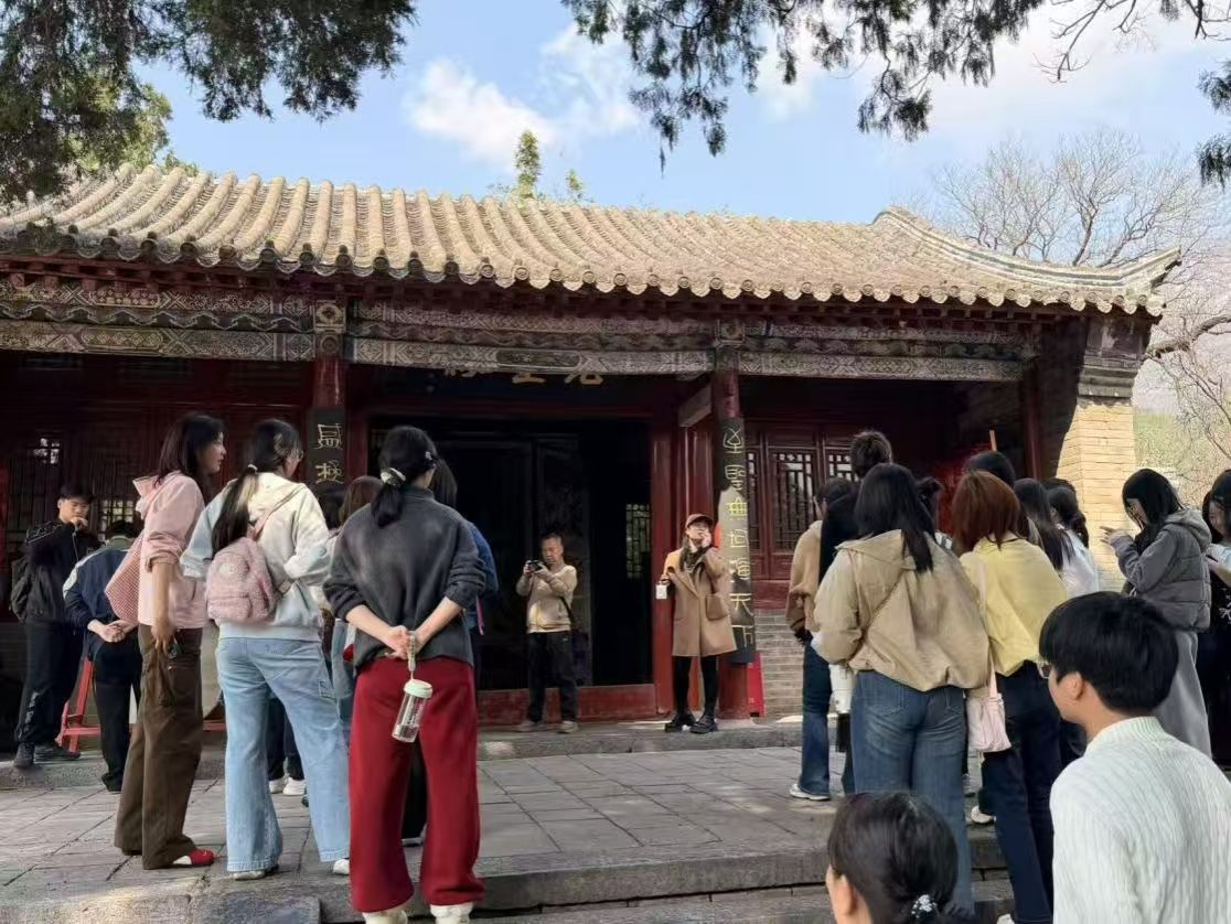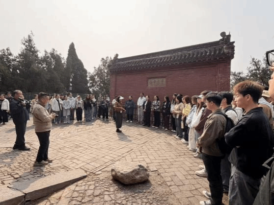 结束观星台的参观学习后,师生一行移步至有着“四大书院”之一美誉的嵩阳书院。在古色古香的书院院落,讲解员围绕书院的千年办学历史、儒学文化传承、历代名人讲学轶事等内容展开详细讲述,深入解读碑刻文字蕴含的文化内涵、先圣殿所承载的儒家思想精髓。漫步书院回廊,同学们在一砖一瓦、一碑一刻中,触摸历史文脉,传承尊师重道、勤学笃行的优良传统,进一步增强了文化自信与民族自豪感。
