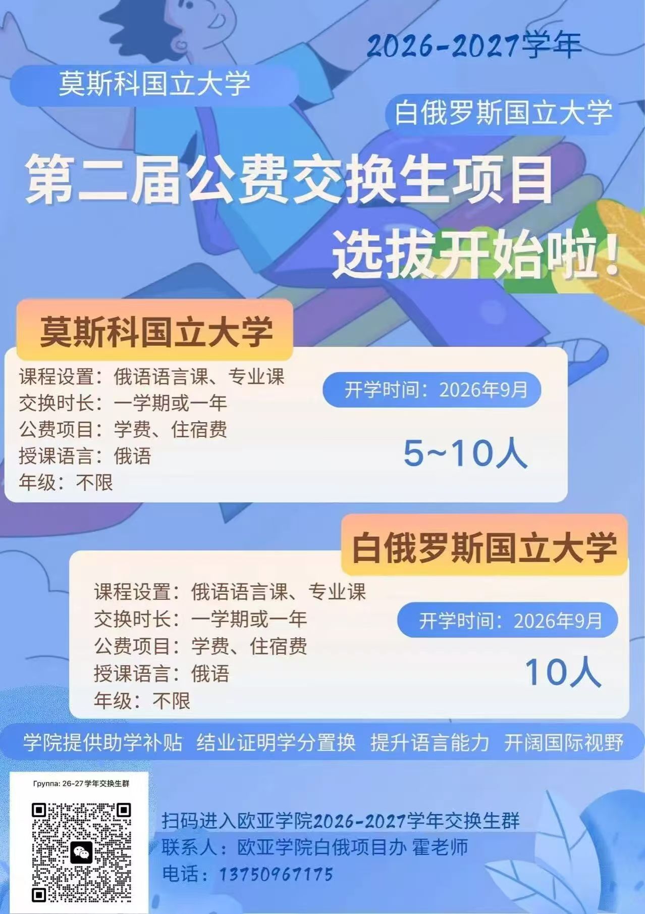 2026-2027学年莫斯科国立大学、白俄罗斯国立大学公费交流生项目报名选拔正式开启