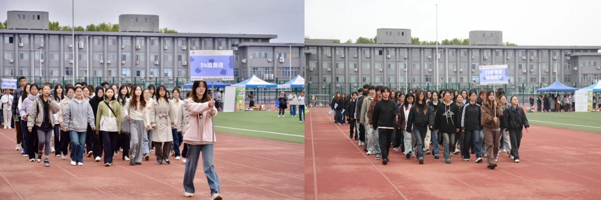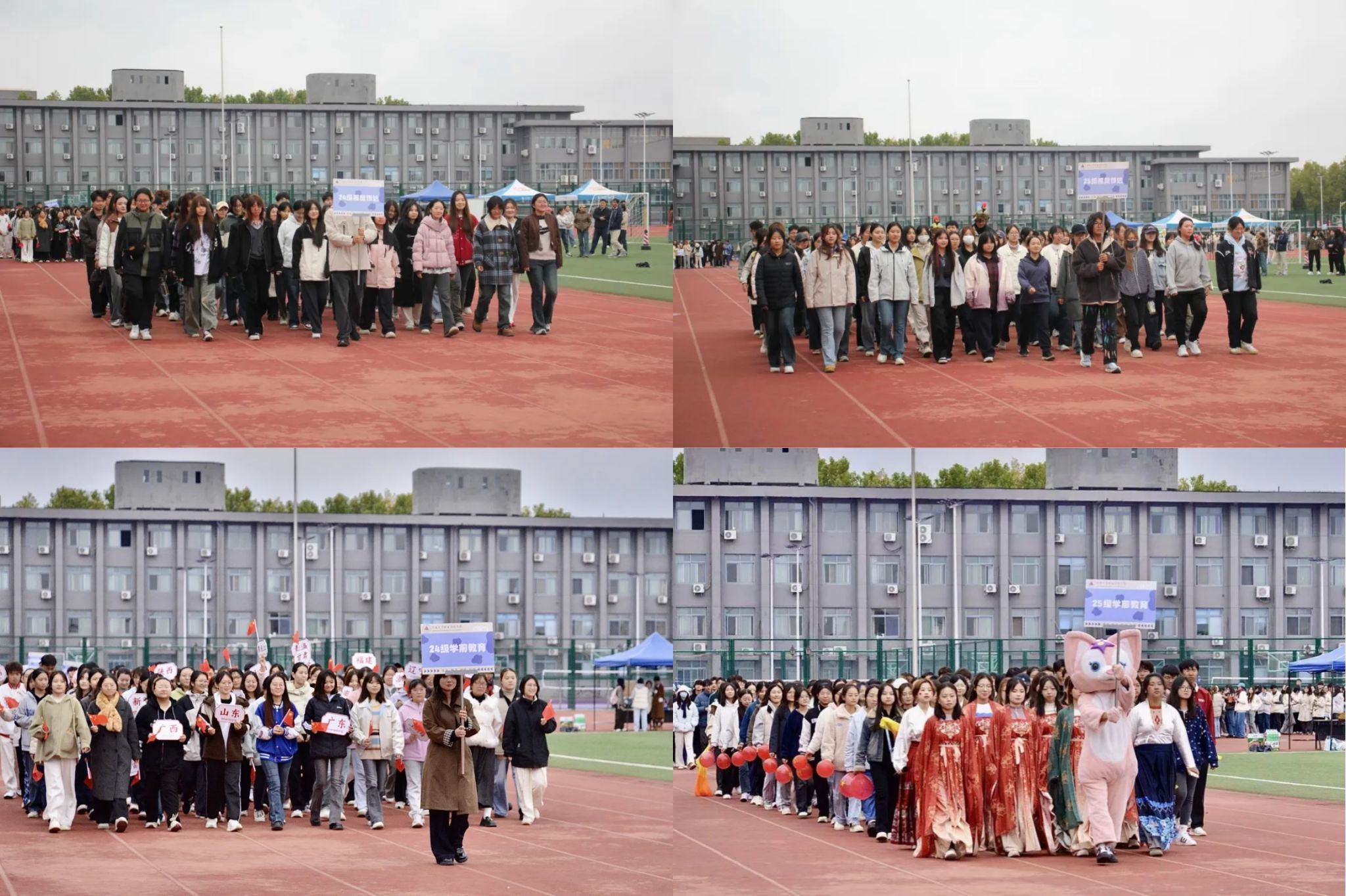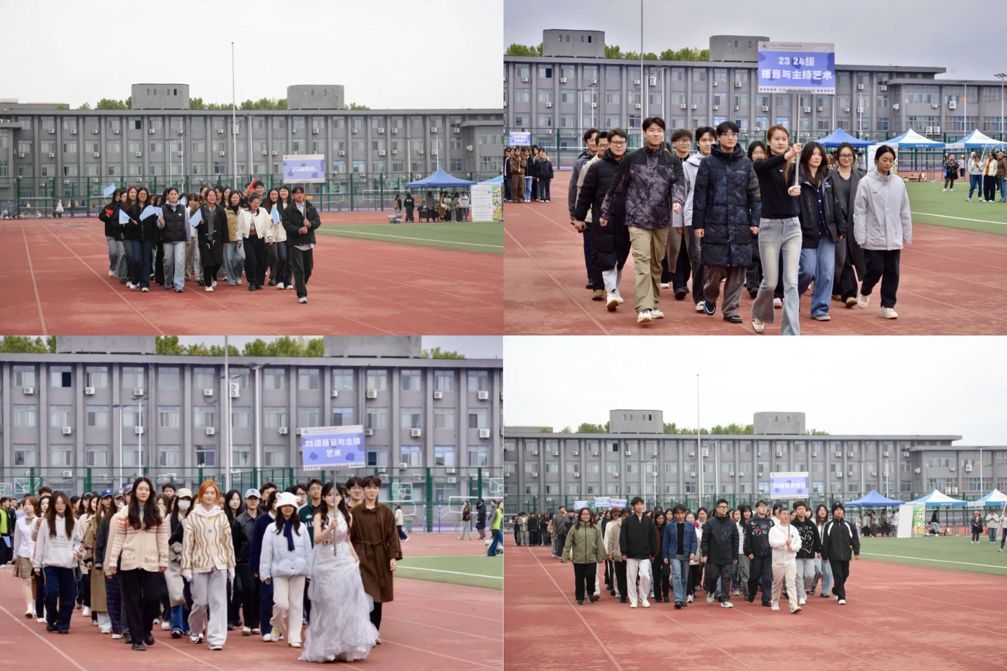 开场舞结束后,2022、2023、2024和2025各年级方阵迈着整齐的步伐依次入场,成为开幕式最亮眼的风景线。其中,各专业方阵格外引人注目 —— 他们举着设计精巧的专业标识牌,以独特的创意展现专业特色与青春态度: